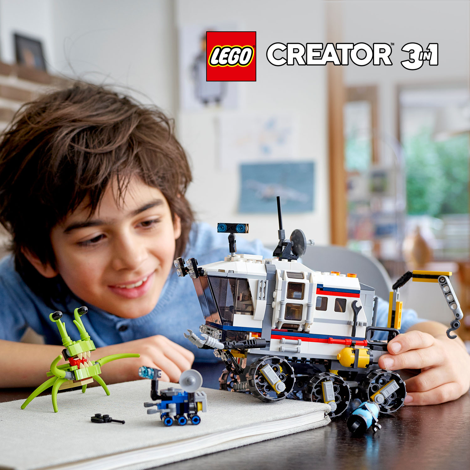 Tato sada LEGO® Creator 3 v 1 umožňuje postavit 3 parádní modely: průzkumné vesmírné vozidlo, vesmírnou základnu a vesmírný letoun.